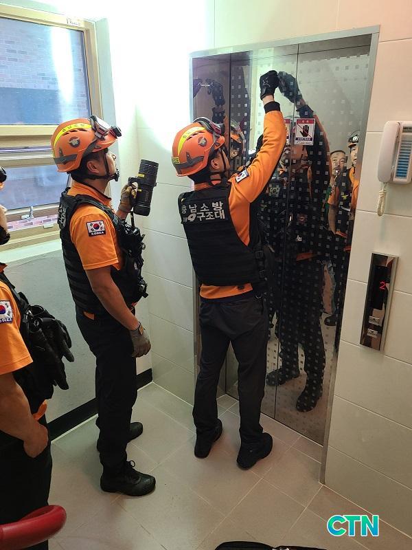 ¼Ò¹æ¼ °ü°èÀÚ´Â "¿¤¸®º£ÀÌÅͰ¡ ¸ØÃèÀ» ¶§ ¹®À» °Á¦·Î ¿°Å³ª ¶Ù¸é 2Â÷»ç°í°¡ ¹ß»ýÇÒ ¿ì·Á°¡ ÀÖ´Ù¸ç, Ä§ÂøÇÏ°Ô ºñ»óº§À» ´·¯ °ü°èÀÚ¿¡°Ô ¾Ë¸®°í, 119¿¡ ½Å°íÇÏ¿© °Ç¹° À̸§°ú ¸ØÃçÀÖ´Â À§Ä¡¸¦ ¾Ë·ÁÁÖ¸é ½Å¼ÓÇÑ ÀÎ¸í±¸Á¶¿¡ µµ¿òÀÌ µÈ´Ù"°í ¸»Çß´Ù.