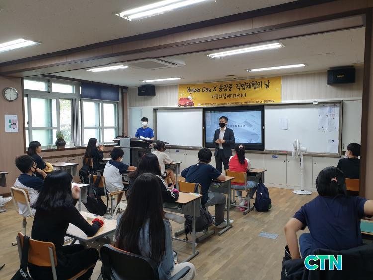 Áö³ 27ÀÏ µ¿°ÁßÇб³ Àü±³»ý 51¸íÀÌ Âü¿©ÇÑ °¡¿îµ¥ ÀÚµ¿Â÷ ¼³°è µðÀÚÀ̳Ê, 3DÇÁ¸°ÆÃ Àü¹®°¡, ·Îº¿ °øÇÐÀÚ, À¥ ¼Ò¼³°¡¸¦ Ãʺù, °¢ ºÐ¾ßÀÇ Á÷¾÷ ¼³¸í°ú ½Ç¹« üÇèÀÇ ½Ã°£À» °¡Á³´Ù.