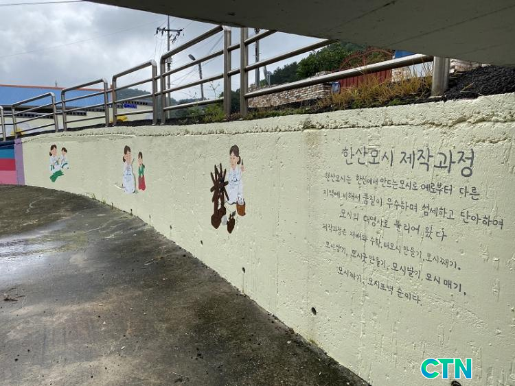 [¼Ãµ/CTN]ÀÓÁ¾º¹ ±âÀÚ = ¼Ãµ±º ÇÑ»ê¸é ÁöÇö2¸®(ÀÌÀå ÃÖÁ¾½Ä)°¡ ¸¶À»È¸°ü º®¸é°ú ÁÖº¯ ´ãÀå¿¡ 'ÇÑ»ê¸ð½Ã¿Í ÇÑ»ê¼Ò°îÁÖ'¸¦ ÁÖÁ¦·Î º®È¸¦ Á¶¼ºÇØ ´«±æÀ» ²ø°í ÀÖ´Ù.