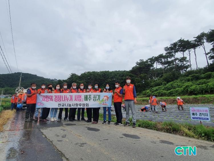 [¼Ãµ/CTN]ÀÓÁ¾º¹ ±âÀÚ = ¼Ãµ±º ÆÇ±³³ª´®»ç¶ûÈÄ¿øÈ¸(ÈÄ¿øÈ¸Àå ÀÌÁ¾ÇÏ)´Â 1ÀÏ ÈÄ¿øÈ¸¿ø, Èñ¸ÁÀÏÀÚ¸® »ç¾÷´Ü, °ø¹«¿ø µî 40¿© ¸íÀÌ Âü¿©ÇÑ °¡¿îµ¥ ÆÇ±³¸é ¼ö¼º¸® ÈÞ°æÁö 300¿© Æò¿¡ 2000Æ÷±âÀÇ ¹èÃß¿Í ¹«¸¦ ½É¾ú´Ù.