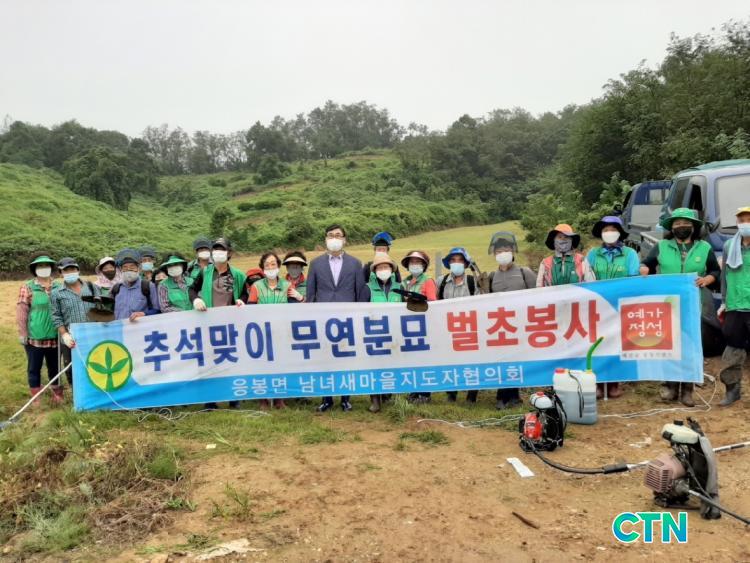 [¿¹»ê/CTN]ÃÖ¿ë°ü ±âÀÚ = ¿¹»ê±º ÀÀºÀ¸é »õ¸¶À»ÁöµµÀÚÇùÀÇȸ(ȸÀå À±¼®Á¾, ¹ÎÀÚÇö)´Â Ãß¼®À» ¸Â¾Æ 17ÀÏ ½Å¸®, °èÁ¤¸® ÀÏ´ë¿¡ À§Ä¡ÇÑ ¹«¿¬ºÐ¹¦ ¹úÃÊÀÛ¾÷À» ½Ç½ÃÇß´Ù.