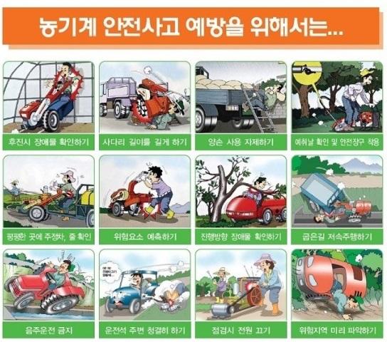ÀÌ·¯ÇÑ ³ó±â°è »ç°í¸¦ ¿¹¹æÇÏ·Á¸é ¡ã³ó±â°è »ç¿ëÀü¡¤ÈÄ Á¡°ËÇϱ⠡ãÁ¡°ËÁß ¿£Áø ²ô±â ¡ã¾ÈÀüÀ屸 Âø¿ëÇϱ⠡㵵·ÎÁÖÇà ½Ã ±³Åë¹ý±Ô ÁؼöÇϱ⠡ãÀ½ÁÖ¿îÀü ±ÝÁö µî ¾ÈÀü¼öÄ¢À» ÁؼöÇØ¾ßÇÑ´Ù.