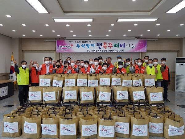 ÇÑ»ê»ç¶ûÈÄ¿øÈ¸(ȸÀå ½ÅÇõÈ£), ÇÑ»ê¸éÁö¿ª»çȸº¸ÀåÇùÀÇü(¹Î°£À§¿øÀå °¼º¶ô) À§¿ø 50¿© ¸íÀÌ Âü¿©ÇÑ °¡¿îµ¥ Áö¿ª ³» ¼Ò¿Ü°èÃþ 120°¡±¸¿¡ ¸ð½Ã¼ÛÆí, Áֹ漼Á¦, ¹°Æ¼½´, ¶ó¸é, ¸ð½Ã¾ç¸» µîÀÌ ´ã±ä Çູ²Ù·¯¹Ì¸¦ Àü´ÞÇÏ¸ç ¾ÈºÎ¸¦ È®ÀÎÇß´Ù.