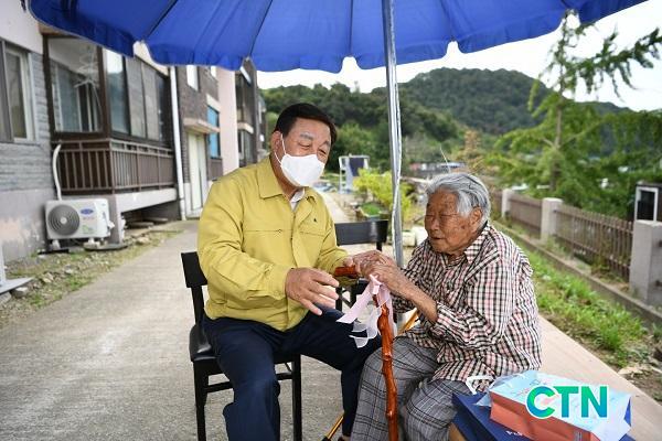 [¿¹»ê/CTN]ÃÖ¿ë°ü ±âÀÚ = ¿¹»ê±ºÀº Á¦24ȸ ³ëÀÎÀÇ ³¯À» ±â³äÇØ Áö³ 29ÀÏ ¿¹»êÀ¾¿¡ °ÅÁÖÇÏ´Â ÀÌ ¸ð(100) ¾î¸£½Å ´ìÀ» ¹æ¹®ÇØ °Ç°°ú Àå¼ö¸¦ »ó¡ÇÏ´Â Àå¼öÁöÆÎÀÌ 'û·ÁÀå'À» Àü´ÞÇÏ°í ¹«º´Àå¼ö¸¦ ±â¿øÇß´Ù.