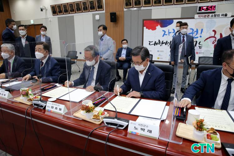 À̳¯ ÅõÀÚ Çù¾à½Ä¿¡´Â ³ë¹Ú·¡ ±º¼ö¿Í ¾ç½ÂÁ¶ µµÁö»ç¸¦ ºñ·ÔÇÑ µµ³» 6°³ ½Ã¡¤±º ÀÚÄ¡´ÜüÀå°ú 13°³ ±â¾÷ ´ëÇ¥°¡ Âü¼®ÇØ ÅõÀÚ¾çÇØ°¢¼¿¡ ¼¸íÇÏ¸ç »óÈ£ »ó»ýÀÇÁö¸¦ ¹àÇû´Ù.