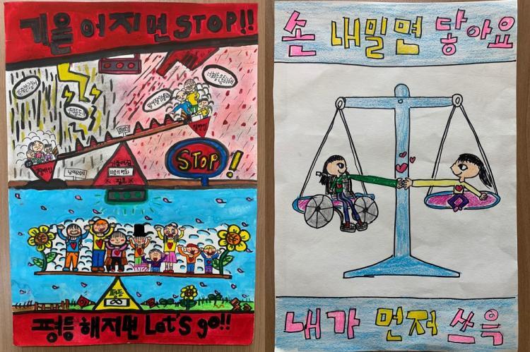 ÃÖ¿ì¼ö»óÀº ¸¶»êÃʵîÇб³ ±è¿¬Èñ ÇлýÀÇ Æ÷½ºÅÍ 'ÆòµîÇϸé Let's go!'¿Í °í¹ÎÁ¤ ÇлýÀÇ Æ÷½ºÅÍ 'Àå¾ÖÀο¡°Ô ¸ÕÀú ¼Õ ³»¹Ì´Â ¿ë±â'°¡ ¼±Á¤µÆ´Ù.