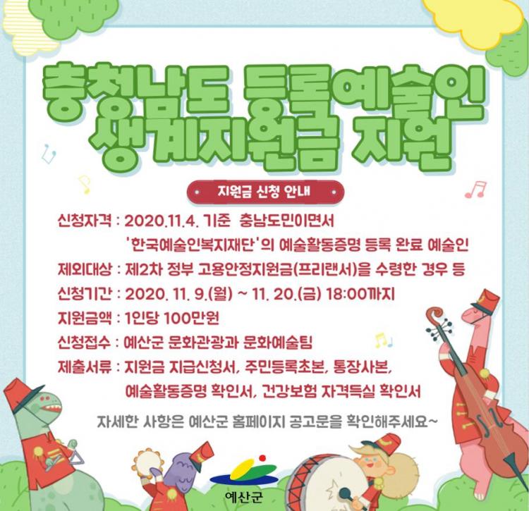 ¿¹»ê±º, µî·Ï¿¹¼úÀÎ »ý°èÁö¿ø±Ý ½Åû Á¢¼ö