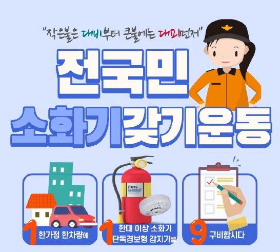 Àü ±º¹Î ¼Òȱ⠰®±â ¿îµ¿Àº '1(ÇϳªÀÇ °¡Á¤¡¤Â÷·®¿¡) 1(ÇÑ´ëÀÌ»ó ¼Òȱ⡤°¨Áö±â¸¦) 9(±¸ºñ) ÇսôÙ'¶ó´Â È«º¸ ½½·Î°ÇÀ¸·Î ÁÖÅÃÈÀç ¶Ç´Â Â÷·®ÈÀç ¹ß»ý ½Ã ½Å¼ÓÇÑ Ãʱâ´ëÀÀÀ¸·Î ÇÇÇØ¸¦ ÃÖ¼ÒÈÇÏÀÚ´Â ¿îµ¿ÀÌ´Ù.