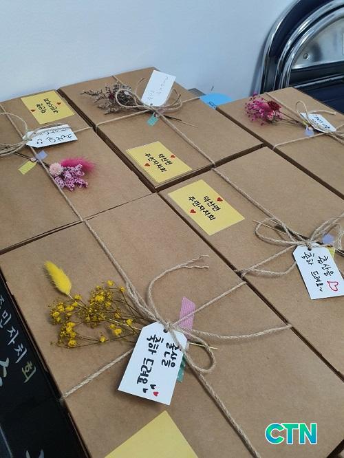 ´ö»ê¸é ÁÖ¹ÎÀÚÄ¡¼¾ÅÍ¿¡¼ À§¿ø ¹× ÁֹεéÀÌ Áö¿ª ³» ÀÓ½ÅÇÑ 5°¡±¸¸¦ ´ë»óÀ¸·Î Ãâ»ê‧À°¾Æ¿ëǰÀ» Áö¿øÇϱâ À§ÇØ Àӽźκ¹°ú ½Å»ý¾Æ ¹è³ÁÀú°í¸®¸¦ Á÷Á¢ Á¦ÀÛÇßÀ¸¸ç, Äڷγª19 ¿¹¹æÀ» À§ÇØ ºñ´ë¸é ¹æ½ÄÀÎ ¿ìÆíÀ¸·Î Àü´ÞÇß´Ù.
