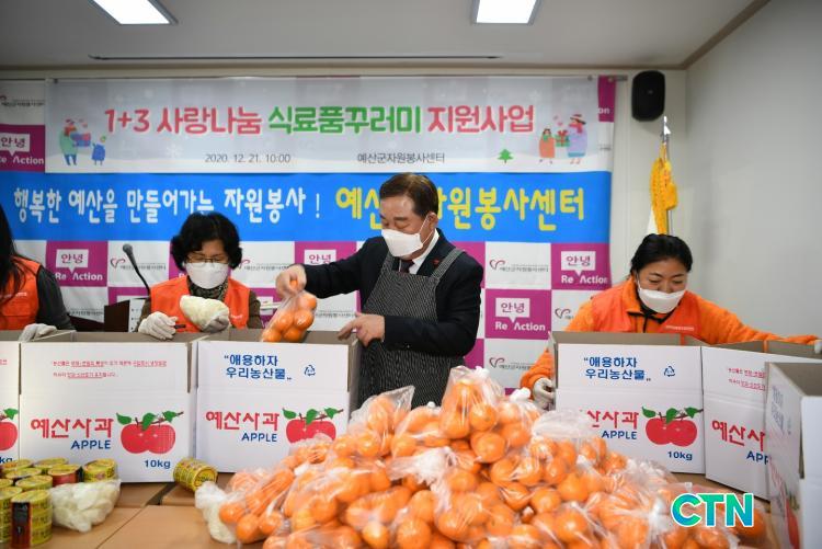 [¿¹»ê/CTN]ÃÖ¿ë°ü ±âÀÚ = ¿¹»ê±º ÀÚ¿øºÀ»ç¼¾ÅÍ(¼¾ÅÍÀå Á¤³«±Ô)´Â Áö³ 21ÀÏ Äڷγª19 ¿¹¹æ¼öÄ¢À» ÁؼöÇÑ °¡¿îµ¥ °ü³» ºÀ»ç´Üü 30¸íÀÌ Âü¿©ÇØ Ãë¾à°èÃþ¿¡°Ô Àü´ÞÇÒ ½Ä·áǰ²Ù·¯¹Ì 360°³¸¦ Á¦ÀÛÇß´Ù.
