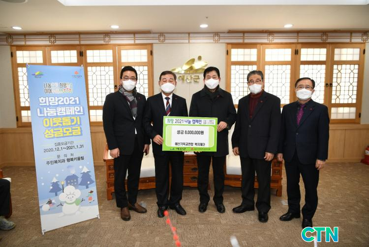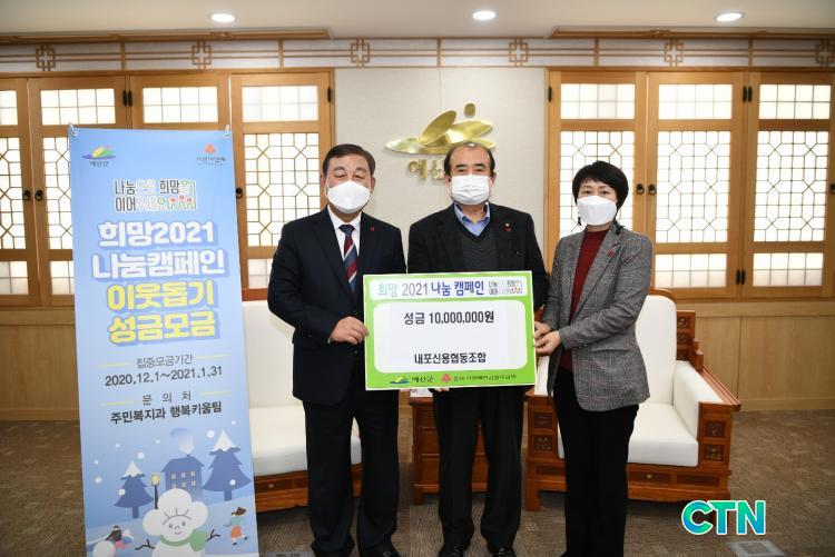 ±ºÀº Áö³ 22ÀÏ ³»Æ÷½Å¿ëÇùµ¿Á¶ÇÕ(ÀÌ»çÀå ±è±â¸é) 1000¸¸¿ø, ¿¹»ê±âµ¶±³¿¬ÇÕº¹ÁöÀç´Ü(´ëÇ¥ÀÌ»ç ±èÁ¾½Å) 800¸¸¿ø, »ç¶ûÀÇ¿¸Å ³ª´®ºÀ»ç´Ü(´ÜÀå À̰æÈ¿) 200¸¸¿øÀ» ºñ·ÔÇØ ´ë¿øÄ¿¸Ó½º(´ëÇ¥ ¹ÚÁؼ,±èÁÖ¿¬)¿¡¼´Â ¸¶½ºÅ© 1¸¸ÀåÀ» 'Èñ¸Á2021 ³ª´®Ä·ÆäÀÎ' ÀÌ¿ôµ½±â ¼º±Ý ¹× Çö¹°·Î ±âŹÇß´Ù°í ¹àÇû´Ù.