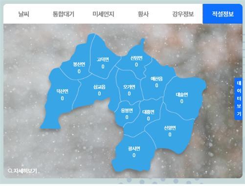 '¿¹»ê±º Àç³¾ÈÀüÆ÷ÅÐ'Àº ½Ç½Ã°£À¸·Î 12°³ À¾¡¤¸é ±â¿Â, ´ë±â, ¹Ì¼¼¸ÕÁö, Ȳ»ç, ¿ÀÁ¸, Àڿܼ±, °¿ì¡¤Àû¼³Á¤º¸ µîÀ» Á¦°øÇϸç, ƯÈ÷ °Ü¿ïö Àû¼³·®À» ½Ç½Ã°£À¸·Î È®ÀÎÇÒ ¼ö ÀÖ¾î ±º¹Îµé ½º½º·Î ´ëºñ¿Í ´ëÀÀÀÌ °¡´ÉÇÏ´Ù.