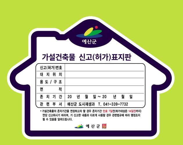 ¿¹»ê±º, °¡¼³°ÇÃ๰ Ç¥ÁöÆÇ ºÎÂøÁ¦µµ ½ÃÇà