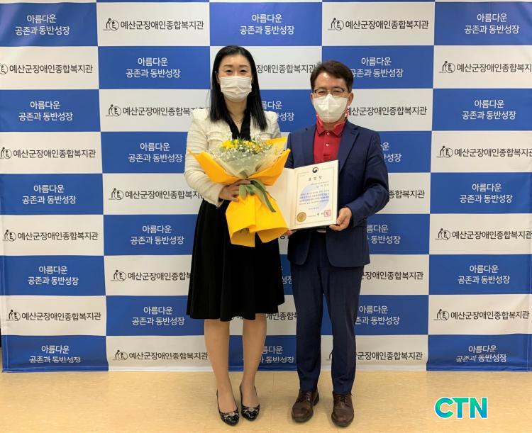 [¿¹»ê/CTN]ÃÖ¿ë°ü ±âÀÚ = ¿¹»ê±ºÀå¾ÖÀÎÁ¾ÇÕº¹Áö°üÀº ¹Ú°æ¹Ì ±âȹ¿¬°èÆÀÀåÀÌ 'Á¦15ȸ »çȸº¹Áö»çÀÇ ³¯'À» ¸Â¾Æ Áö¿ª»çȸº¹Áö¹ßÀü¿¡ ¼±µµÀû ¿ªÇÒ°ú Àå¾ÖÀκ¹Áö ¹ßÀü¿¡ ±â¿©ÇÑ °ø·Î¸¦ ÀÎÁ¤¹Þ¾Æ º¸°Çº¹ÁöºÎÀå°ü ǥâÀ» ¼ö»óÇß´Ù°í 2ÀÏ ¹àÇû´Ù.