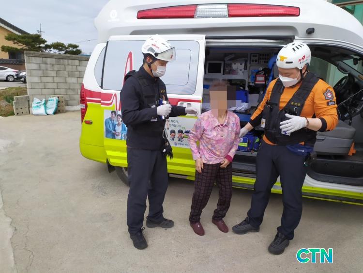 [¿¹»ê/CTN]ÃÖ¿ë°ü ±âÀÚ = ¿¹»ê¼Ò¹æ¼(¼Àå ±è¿À½Ä)°¡ Ä¡¸ÅÁõ¼¼ ³ëÀÎ ½ÇÁ¾½Å°í¸¦ ¹Þ°í Ãâµ¿ÇØ ¼ö»ö 1½Ã°£ ¸¸¿¡ Àα٠µµ·Î¿¡¼ ½ÇÁ¾ÀÚ ¹ß°ßÇÏ¿© ¾ÈÀüÇÏ°Ô °¡Á·µéÀÇ Ç°À¸·Î µ¹¾Æ°¬´Ù°í ¹àÇû´Ù.