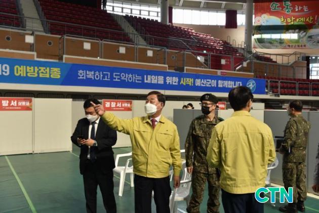 [¿¹»ê/CTN]ÃÖ¿ë°ü ±âÀÚ = ¿¹»ê±ºÀº Äڷγª19 ¿¹¹æÁ¢Á¾¼¾ÅͰ¡ ¼³Ä¡µÈ À±ºÀ±æÃ¼À°°ü¿¡¼ 6ÀÏ ¹é½ÅÁ¢Á¾ ¸ðÀÇÈÆ·ÃÀ» ½Ç½ÃÇß´Ù.
