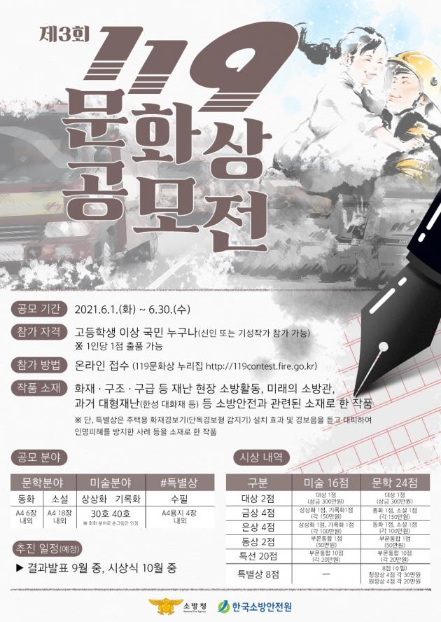 [¿¹»ê/CTN]ÃÖ¿ë°ü ±âÀÚ = ¿¹»ê¼Ò¹æ¼(¼Àå ±è¿À½Ä)´Â ÀÌ´ÞºÎÅÍ ¿À´Â 6¿ù 30ÀϱîÁö ¼Ò¹æÃ»°ú Çѱ¹¼Ò¹æ¾ÈÀü¿øÀÌ °øµ¿ ÁÖÃÖÇÏ´Â 'Á¦3ȸ 119¹®È»ó ÀÛǰ °ø¸ðÀü' Âü°¡ µ¶·Á¸¦ È«º¸Çϰí ÀÖ´Ù.