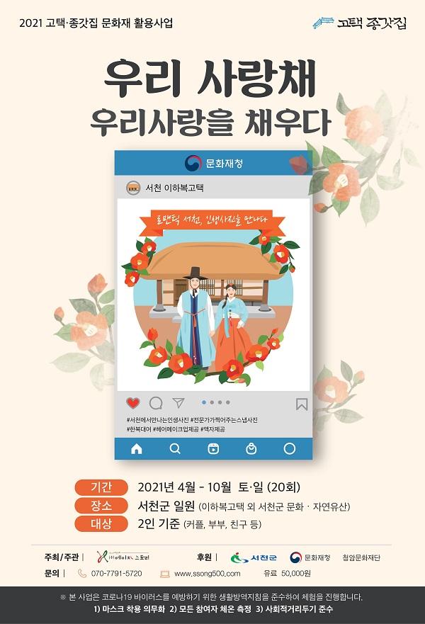 ±× Áß '¿ì¸®»ç¶ûä, ¿ì¸®»ç¶ûÀ» ä¿ì´Ù'´Â ¿¬ÀÎ, Ä£±¸, ºÎºÎ µîÀ» ´ë»óÀ¸·Î ÀÌÇϺ¹ °íÅðú ¼ÃµÀÇ Áö¿ª¸í¼Ò¸¦ ¹è°æÀ¸·Î Àü¹®°¡°¡ »çÁøÀ» ÃÔ¿µÇØÁÖ´Â ÇÁ·Î±×·¥À¸·Î ¿À´Â 4¿ù 24ÀϺÎÅÍ 10¿ù 20ÀϱîÁöÀÇ ±â°£ Áß »çÀü ½ÅûÀÚ¸¦ ¹Þ¾Æ ÃÑ 20ȸ ÁøÇàÇÒ ¿¹Á¤ÀÌ´Ù. Âü°¡ºñ´Â 5¸¸¿øÀ̸ç, ÃÔ¿µ¿¡ ÇÊ¿äÇÑ ÇѺ¹´ë¿©, ¸ÞÀÌÅ©¾÷ ¹× Çì¾î½ºÅ¸Àϸµ µîÀÌ Á¦°øµÈ´Ù.