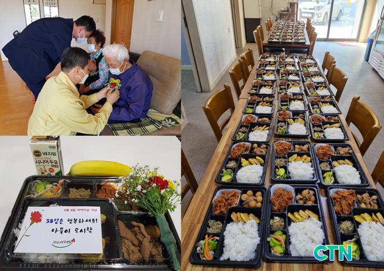 ÈÄ¿øÈ¸´Â 5¿ù 8ÀÏ ¾î¹öÀ̳¯À» ¸Â¾Æ Äڷγª19·Î ÁÖ·Î Áý¿¡¼¸¸ »ýȰÇÏ´Â ³ëÀθÂÃãµ¹º½¼ºñ½º ¹× Ä¿¹Â´ÏƼÄÉ¾î ´ë»ó ¾î¸£½ÅÀ» ÀÀ¿øÇϰíÀÚ '58ûÃá ³ªµéÀÌ µµ½Ã¶ô »ç¾÷'À» ±âȹÇϰí, ¼Ò°îÁÖÁ¤°ÅÀå(´ëÇ¥ ±è¿¬Èñ)ÀÇ À½½Ä Àç´É±âºÎ¸¦ ¹Þ¾Æ ¿µ¾çÀÌ °¡µæÇÏ°í ±ÕÇü ÀâÈù ³ªµéÀÌ µµ½Ã¶ôÀ» ¸¸µé¾î Ä«³×À̼ǰú ÇÔ²² Àü´ÞÇß´Ù.