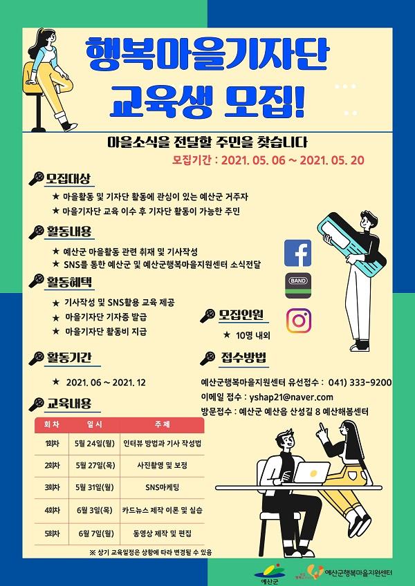 [¿¹»ê/CTN]ÃÖ¿ë°ü ±âÀÚ = ¿¹»ê±ºÇູ¸¶À»Áö¿ø¼¾ÅÍ´Â ¸¶À»È°µ¿°ú ¼¾ÅÍ ¼Ò½ÄÀ» »ý»ýÇÏ°Ô Àü´ÞÇØ ÁÙ 2021³â Çູ¸¶À»±âÀÚ´Ü ±³À°»ýÀ» ¸ðÁýÇÑ´Ù.