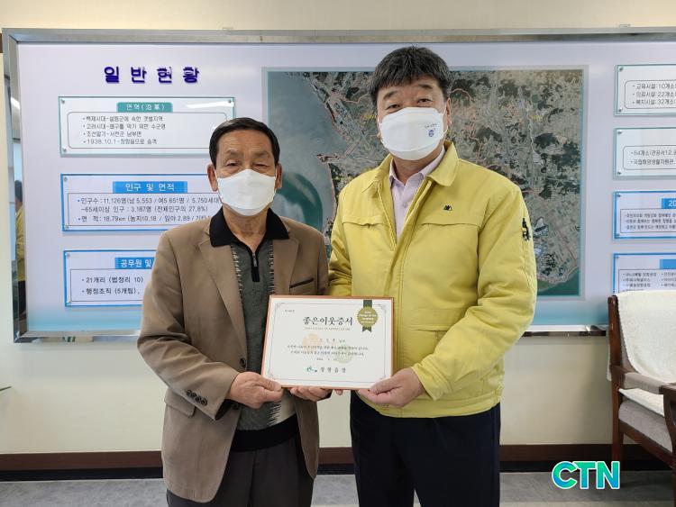 [¼Ãµ/CTN]ÀÓÁ¾º¹ ±âÀÚ = ¼Ãµ±º ÀåÇ×À¾(À¾Àå Á¤ÁøÇü)Àº 5¿ù °¡Á¤ÀÇ ´ÞÀ» ¸Â¾Æ ¾î·Á¿î ÀÌ¿ôÀ» À§ÇØ ½á´Þ¶ó¸ç ÈÄ¿ø±ÝÀ» ±âŹÇÑ ÀåÇ×À¾Áö¿ª»çȸº¸ÀåÇùÀÇü ±è¼ºÈì À§¿øÀåÀ» 'ÁÁÀºÀÌ¿ô 140È£'·Î ¼±Á¤Çϰí Áõ¼¸¦ Àü´ÞÇß´Ù.