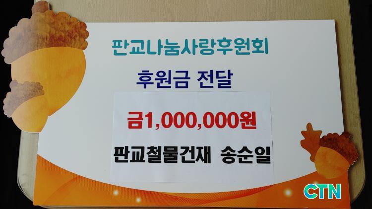 ¼Û¼øÀÏ ´ëÇ¥´Â ÇØ¸¶´Ù ³²¸ð¸£°Ô ÆÇ±³³ª´®»ç¶ûÈÄ¿øÈ¸¿¡ Áö¿ªÀÇ ¾î·Á¿î ÀÌ¿ôÀ» À§ÇÑ ÈÄ¿ø±ÝÀ» ±âŹÇϰí ÀÖ¾î Áö¿ª»çȸ¿¡ ÈÆÈÆÇÔÀ» ÀüÇϰí ÀÖ´Ù.