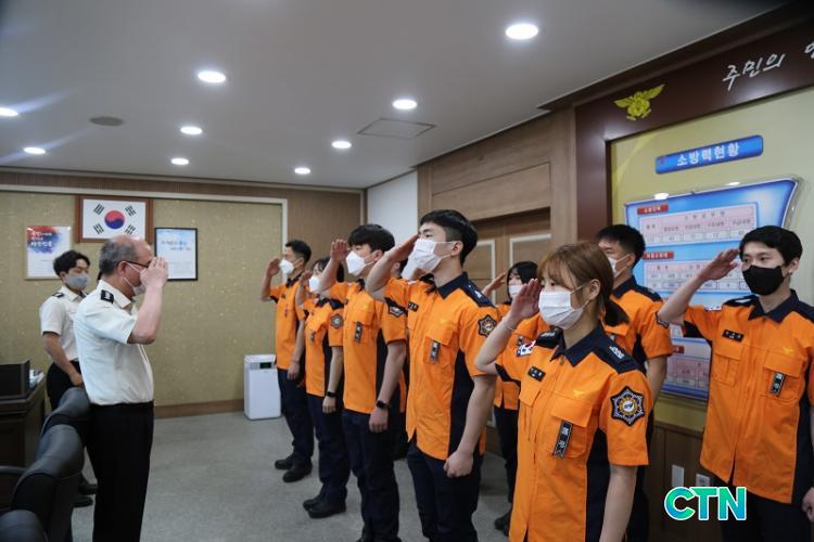 [¿¹»ê/CTN]ÃÖ¿ë°ü ±âÀÚ = ¿¹»ê¼Ò¹æ¼(¼Àå ±è¿À½Ä)´Â ½ÉÁ¤Áö¡¤±Þ¼º³úÁ¹Áß È¯ÀÚ¸¦ »ì¸° 10¸íÀÇ ¼Ò¹æ´ë¿ø¿¡°Ô 'ÇÏÆ®¡¤ºê·¹Àμ¼À̹ö' ÀÎÁõ¼¿Í ¹èÁö¸¦ ¼ö¿©Çß´Ù°í 12ÀÏ ¹àÇû´Ù.