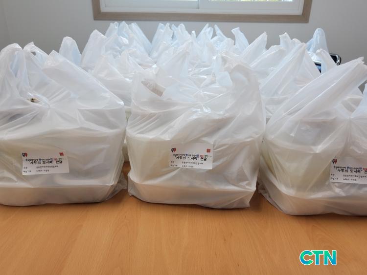 ÇùÀÇü´Â ´çÃÊ ½Ä´ç¿¡¼ µ¶°Å³ëÀο¡°Ô À½½ÄÀ» ´ëÁ¢ÇÒ °èȹÀ̾úÀ¸³ª Äڷγª19 ¿©ÆÄ·Î ÁýÇÕ±ÝÁö°¡ °è¼ÓµÇ¸é¼ Á÷Á¢ ¸¸µç µµ½Ã¶ô Àü´Þ·Î Çà»ç¸¦ ´ëüÇßÀ¸¸ç, ÀÌ¿¡ ÇÊ¿äÇÑ µµ½Ã¶ô ¿ë±â´Â ÇùÀÇü¿¡¼ Áö¿øÇÏ°í µµ½Ã¶ô Àü´ÞÀº ÇùÀÇü À§¿øµéÀÌ ´ã´çÇß´Ù.