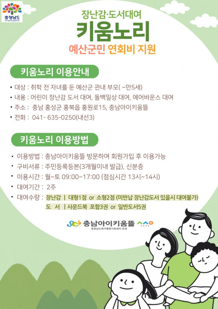 [¿¹»ê/CTN]ÃÖ¿ë°ü ±âÀÚ = ¿¹»ê±ºÀº ¾ÆÀÌ ³º°í Ű¿ì±â ÁÁÀº ¿¹»ê Á¶¼ºÀÇ ÀÏȯÀ¸·Î Ãæ³²À°¾ÆÁ¾ÇÕÁö¿ø¼¾ÅÍ¿¡¼ ¿î¿µÇÏ´Â Àå³°¨¡¤µµ¼´ë¿©Á¡ 'Ű¿ò³ë¸®' ¿¬È¸ºñ¸¦ Àü¾× Áö¿øÇÑ´Ù.