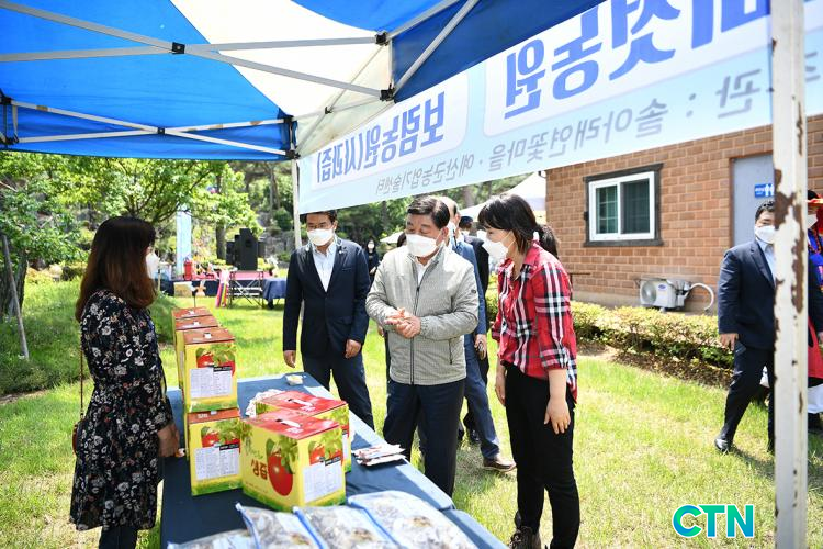 ¶ÇÇÑ °ü³» ³ó¾÷ÀεéÀÌ Âü¿©ÇÑ ³ó»ê¹° ÆÇ¸Å ºÎ½º¿¡¼´Â Á÷Á¢ »ý»êÇÑ »ç°úÁó, ²ÉÂ÷, Ç¥°í¹ö¼¸ µî Áö¿ª³ó»ê¹°À» È«º¸Çϰí Àü½Ã¡¤ÆÇ¸ÅÇß´Ù.