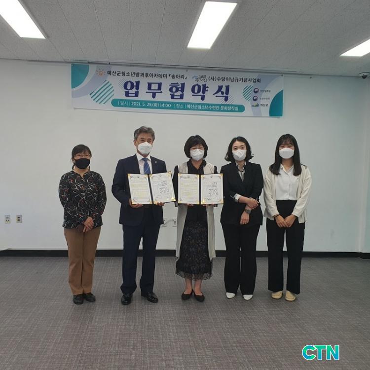 [¿¹»ê/CTN]ÃÖ¿ë°ü ±âÀÚ = (»ç)¼ö´çÀ̳²±Ô±â³ä»ç¾÷ȸ(ÀÌ»ç ÀÌÀº±Ô)´Â ¿¹»ê±º û¼Ò³âµéÀÇ º¹ÁöÇâ»ó ¹× °íÅà ŽÇè ±âȸ Á¦°øÀ» À§ÇØ Áö³ 25ÀÏ ¿¹»ê±ºÃ»¼Ò³â¼ö·Ã°ü(°üÀå Á¶¼ö°æ)°ú ¼ö·Ã°ü ¹®ÈâÀ۽ǿ¡¼ ¾÷¹«Çù¾àÀ» ü°áÇß´Ù.