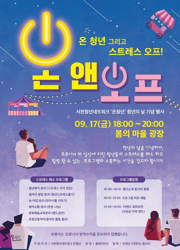 û³âÀÇ ³¯ ±â³äÇà»ç´Â ÀÏ»ó¿¡ ÁöÄ£ û³âÀ» À§ÇÑ ½ºÆ®·¹½º ÇØ¼Ò ÇÁ·Î±×·¥À» ºñ·ÔÇØ û³â ±³·ù Ȱµ¿À» Àå·ÁÇϱâ À§ÇØ ÁøÇàµÇ¸ç, '¿Â ¾Ø ¿ÀÇÁ – ¿Â û³â ½ºÆ®·¹½º ¿ÀÇÁ!' ¶ó´Â ÁÖÁ¦·Î ¿Âû³â °¢ ºÐ°ú ¹× ¼Ò¼Ó µ¿¾Æ¸® Ȱµ¿ È«º¸ ºÎ½º, ±º Áö¿ª ¹êµå '79¹êµå'ÀÇ °ø¿¬, ÇöÀå Âü¿©ÀÚ SNS ÀÎÁõ À̺¥Æ® µîÀ¸·Î ±¸¼ºµÅ ÀÖ´Ù.