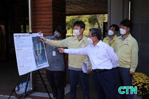 [¼Ãµ/CTN]ÀÓÁ¾º¹ ±âÀÚ = ³ë¹Ú·¡ ¼Ãµ±º¼ö´Â 23ÀÏ ¼³ÇØ¿ø °ü±¤´ÜÁö Á¶¼º»ç¾÷ Áö¿ø´Ü(T/FÆÀ) ¹× °ü·Ã ½Ç°úÀå µî 20¿©¸í°ú ÇÔ²² Á¾Ãµ¸é ÀÏ¿ø ¼³ÇØ¿ø °ü±¤´ÜÁö »ç¾÷ ¿¹Á¤Áö¸¦ Á¡°ËÇß´Ù.
