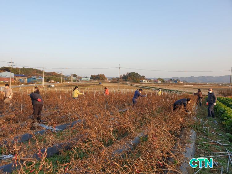 [¼Ãµ/CTN]ÀÓÁ¾º¹ ±âÀÚ = ¼Ãµ±º Ⱦç¸é(¸éÀå Á¤Ãá±æ) ÇàÁ¤º¹Áö¼¾ÅÍ Á÷¿ø 10¿©¸íÀº Áö³ 16ÀÏ Áö¿ª ³» ÀÏ¼Õ È®º¸¿¡ ¾î·Á¿òÀ» °Þ°í ÀÖ´Â ³ó°¡¸¦ ¹æ¹®ÇØ °íÃß ¼öÈ® ÈÄ ¹çÀ» Á¤¸®ÇÏ´Â ³óÃÌÀϼյ½±â¸¦ ½Ç½ÃÇß´Ù.
