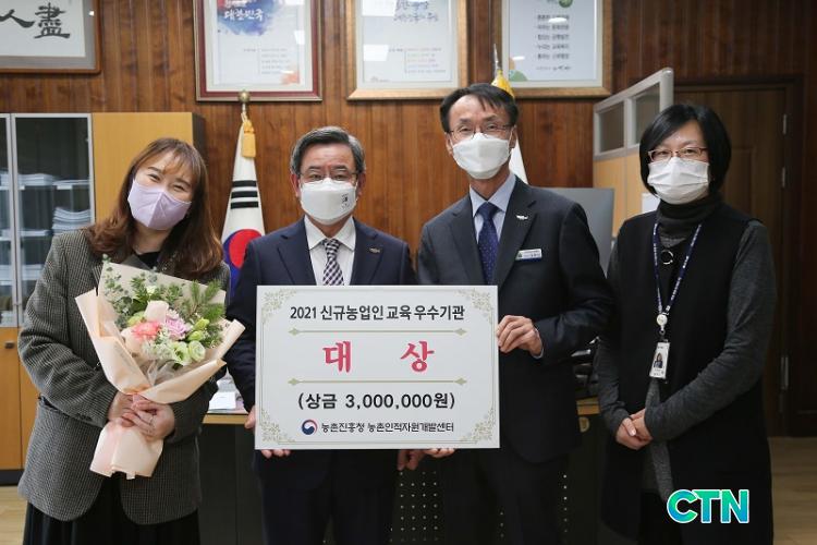 ³ó¾÷±â¼ú¼¾ÅÍ Àå¼øÁ¾ ¼ÒÀåÀº "½Å±Ô ³ó¾÷ÀεéÀÌ »õ·Î¿î ³ó¾÷¡¤³óÃÌÀÇ ÁÖ¿ªÀÌ µÉ ¼ö ÀÖµµ·Ï ±×µ¿¾È ½ÃµµÇÏÁö ¾Ê¾Ò´ø ´Ù¾çÇÑ ¹æ½ÄÀÇ ±³À°°úÁ¤ ¿î¿µ°ú °ß°íÇÑ ÀÎÀû ³×Æ®¿öÅ©¸¦ ±¸¼ºÇÑ °á°ú ±³À°ÀÇ È¿À²¼ºÀ» ³ôÀÌ°í ±³À°»ýÀÇ ³ôÀº ¸¸Á·µµ¸¦ À̲ø¾î³»¾î ÁÁÀº Æò°¡¸¦ ¹ÞÀ» ¼ö ÀÖ¾ú´Ù"¸ç "À̹ø ¼ö»óÀ» °è±â·Î ¾ÕÀ¸·Î ´õ¿í ´Ù¾çÇÑ ±³À°°úÁ¤À» Æí¼ºÇÏ°í »õ·Î¿î ±³À° ¿î¿µ¹æ½ÄÀ» µµÀÔÇØ ±Í³ó±ÍÃÌÇϱâ ÁÁÀº ¼Ãµ±ºÀ» ¸¸µé¾î°¡°Ú´Ù"°í ¸»Çß´Ù.