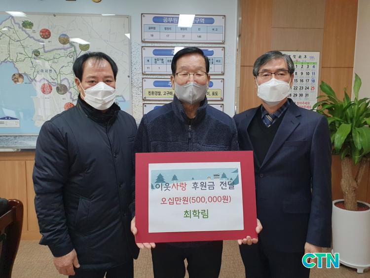 [¼Ãµ/CTN]ÀÓÁ¾º¹ ±âÀÚ = ¼Ãµ±º ¸¶¼¸é ºÀ³²¸® ÁֹΠÃÖÇи² ¾¾°¡ Áö³ 29ÀÏ Áö¿ª ³» ¾î·Á¿î ÀÌ¿ôÀ» À§ÇÑ ¼º±Ý 50¸¸¿øÀ» ¸¶¼»ç¶ûÈÄ¿øÈ¸(ȸÀå ±è¿ëÂù)¿¡ ±âŹÇß´Ù.