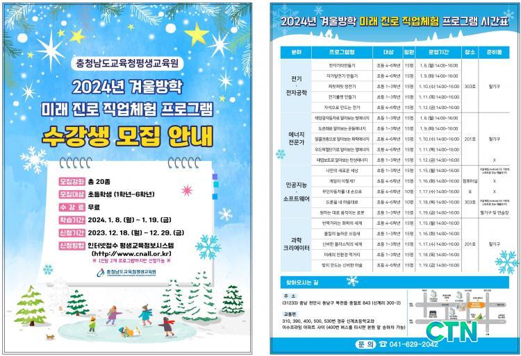 [±³À°/CTN]°Çö¼ö ±âÀÚ = ÃæÃ»³²µµ±³À°Ã»Æò»ý±³À°¿ø(¿øÀå ÀÌ¿µÁø)Àº 2024³â 1¿ù 8ÀϺÎÅÍ 1¿ù 19ÀϱîÁö ¿î¿µµÇ´Â ÃʵîÇлý ´ë»ó ¹Ì·¡Áø·Î Á÷¾÷üÇè ÇÁ·Î±×·¥ ¼ö°»ý ¸ðÁýÀ» 12¿ù 18ÀϺÎÅÍ 29ÀϱîÁö 2ÁÖ°£ ÁøÇàÇÒ ¿¹Á¤ÀÌ´Ù.