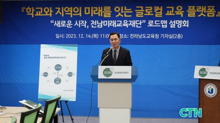 Àü³²¹Ì·¡±³À°Àç´Ü À̱æÈÆ ¿øÀåÀÌ 14ÀÏ Àü³²±³À°Ã» ±âÀڽǿ¡¼ 'Àü³²¹Ì·¡±³À°Àç´Ü ·Îµå¸Ê ¼³¸íȸ' ¾ð·Ð ºê¸®ÇÎÀ» Çϰí ÀÖ´Ù. (»çÁøÁ¦°ø Àü³²±³À°Ã»)