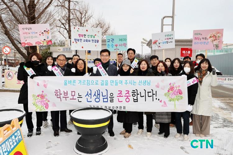 ´«ÀÌ ³»¸®´Â Ãß¿î ³¯¾¾¿¡µµ ºÒ±¸Çϰí À̸¥ ¾ÆÄ§ 8½ÃºÎÅÍ »ï¾çÃʵîÇб³ Á¤¹® ¾Õ¿¡¼ À±°Ç¿µ ±³À°°¨Àº ¿Áõ±³À°Áö¿øÃ» ±³À°Àå, »ï¾çÃÊ Çкθðȸ ȸ¿øµé, Çб³¿î¿µÀ§¿øÈ¸ À§¿ø ±×¸®°í ±³Á÷¿ø°ú ÇÔ²² ±³À°°øµ¿Ã¼ »óÈ£Á¸ÁßÀÇ Àǹ̰¡ ´ã±ä ÇÇÄϰú ¾î±ú¶ì¸¦ Âø¿ëÇÏ°í µî±³ÇÏ´Â Çлý°ú Çкθð, Ãâ±ÙÇÏ´Â ±³»çµé°ú ÀÏÀÏÀÌ ÀλçÇÏ¸ç »óÈ£Á¸Áß°ú Çб³ ±³À° ȸº¹À» À§ÇØ Èû½áÁÙ °ÍÀ» ´çºÎÇß´Ù.