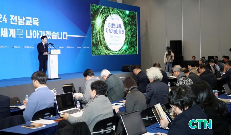 [±³À°/CTN]ÃÖ¿µÁرâÀÚ = Àü¶ó³²µµ±³À°Ã»Àº 4ÀÏ ¿ÀÀü ¿©¼ö¼¼°è¹Ú¶÷ȸÀå¿¡¼ ±è´ëÁß ±³À°°¨ÀÇ ½Å³â ±âÀÚȸ°ßÀ» ÅëÇØ 2024³â ÁÖ¿ä Á¤Ã¥ ÃßÁø°èȹÀ» ¹ßÇ¥Çß´Ù.