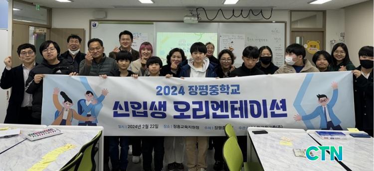 ÀåÈïÀåÆòÁß 2024Çг⵵ ½ÅÀÔ»ýµéÀÌ ¿À¸®¿£Å×À̼ÇÀ» ¸¶Ä£ µÚ ±â³ä»çÁøÀ» Çϰí ÀÖ´Ù.(»çÁøÁ¦°ø Àü³²±³À°Ã»)