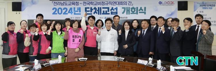 [±³À°/CTN]Çϼº¸Å ±âÀÚ = Àü¶ó³²µµ±³À°Ã»°ú Àü±¹Çб³ºñÁ¤±ÔÁ÷¿¬´ëȸÀÇ(Àü±¹Çб³ºñÁ¤±ÔÁ÷³ëµ¿Á¶ÇÕ, Àü±¹°ø°ø¿î¼ö³ëµ¿Á¶ÇÕ Àü±¹±³À°°ø¹«Á÷º»ºÎ, Àü±¹¿©¼º³ëµ¿Á¶ÇÕ)´Â 4ÀÏ Àü³²±³À°Ã» 5Ãþ »óȲ½Ç¿¡¼ '2024³â ´Üü±³¼· °³È¸½Ä'À» °¡Á³´Ù.