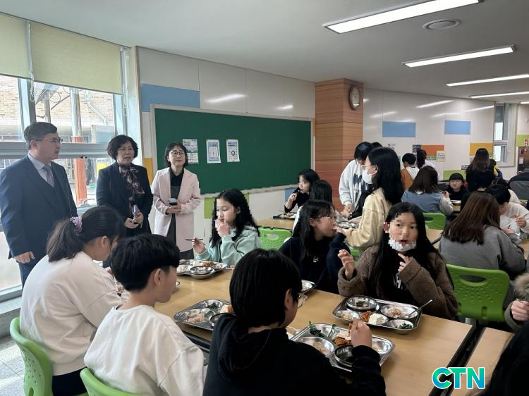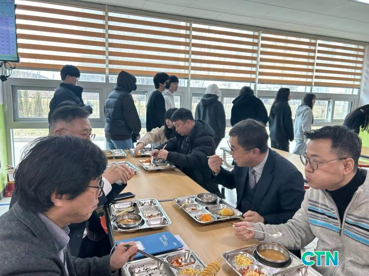 À̹ø ¹æ¹®Àº ³»Æ÷½Åµµ½Ã ¾ÆÆÄÆ® ÀÔÁÖ·Î Çлý¼ö°¡ ¸¹ÀÌ Áõ°¡ÇÑ º¸¼ºÃÊ¿Í ´ö»êÁßÀ» ´ë»óÀ¸·Î ÀÌ·ç¾îÁ³À¸¸ç ÇлýµéÀÇ ¹è½Ä ¹× ½Ä»ç ½Ã°£, À̵¿ µ¿¼± µîÀ» ÁýÁßÀûÀ¸·Î Á¡°ËÇß´Ù. ´ö»êÁß¿¡¼ Çлýµé°ú Á¡½É½Ä»çµµ ÇÔ²² ÇÏ¿´°í. ½Ä´ç ÁõÃà°ø»ç°¡ ÁøÇàÁßÀÎ º¸¼ºÃÊ¿¡¼´Â ÇлýµéÀÇ ¾ÈÀü¿¡ ¹®Á¦´Â ¾ø´ÂÁö µÑ·¯º¸¸ç ÇлýµéÀÇ ºÒÆíÀ» ÃÖ¼ÒÈÇÏ¿© ¸ðµÎ°¡ ¸¸Á·ÇÏ´Â ±Þ½Ä ¿î¿µÀ» À§ÇØ Çб³ °ü°èÀÚ¿Í ÇÔ²² »ìÆñ´Ù.