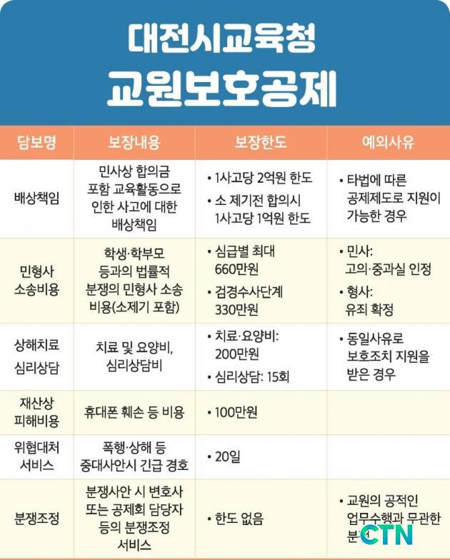 [´ëÀü/CTN]Á¤¹ÎÁØ ±âÀÚ¤Ó´ëÀü±¤¿ª½Ã±³À°Ã»(±³À°°¨ ¼³µ¿È£)Àº ±³¿øÀÇ Á¤´çÇÑ ±³À°È°µ¿À» º¸È£Çϱâ À§ÇØ 2018³âºÎÅÍ ¿î¿µÇØ ¿Â ±³¿ø¹è»ó Ã¥ÀÓº¸ÇèÀÇ º¸Àå¹üÀ§¸¦ È®´ëÇØ ¡¸2024³â ±³¿øº¸È£°øÁ¦ »ç¾÷¡¹À¸·Î °³¼±ÇÑ´Ù°í ¹àÇû´Ù.