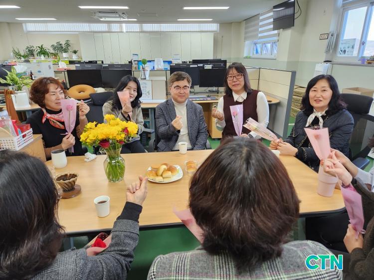 ÀÌ ³¯ ¿ÀÀü ±èÁ¾ÇÏ ±³À°ÀåÀº °¢ °ú »ç¹«½ÇÀ» ¹æ¹®ÇÏ¿© Á÷¿øµéÀ» °Ý·ÁÇÏ¸ç ¿©¼ºÀÇ ³¯À» »ó¡ÇÏ´Â Àå¹Ì²ÉÀ» Àü´ÞÇß´Ù.