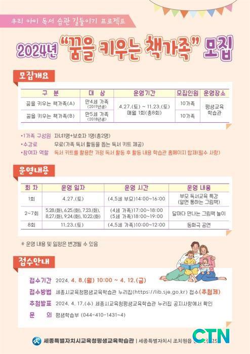 [¼¼Á¾/CTN]Á¤¹ÎÁØ ±âÀÚ¤Ó¼¼Á¾Æ¯º°ÀÚÄ¡½Ã±³À°Ã»Æò»ý±³À°ÇнÀ°ü(°üÀå ¹Ú¿µ½Å, ÀÌÇÏ Æò»ý±³À°ÇнÀ°ü)Àº°ü³» À¯¾Æ °¡Á·(¸¸4~5¼¼)À» ´ë»óÀ¸·Î °¡Á· µ¶¼ÇÁ·Î±×·¥ÀÎ ¡®²ÞÀ» Ű¿ì´Â Ã¥ °¡Á·¡¯À» 4¿ù 8ÀϺÎÅÍ 4¿ù 12ÀϱîÁö ¸ðÁýÇÑ´Ù.