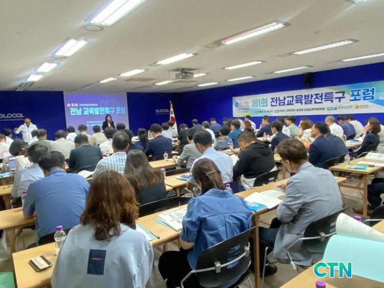 'Áö¿ªÀÎÀç ¾ç¼º°ú Àü³²±³À°¹ßÀüƯ±¸'¸¦ ÁÖÁ¦·Î ¿¸° À̳¯ Æ÷·³¿¡´Â Àü³²µµÀÇȸ, µµ±³À°Ã» ´ã´çÀÚ, 7°³ ½Ã¹üÁö¿ª ÁöÀÚü, ±³À°Áö¿øÃ» °ü°èÀÚ, ±³¿ø, Çкθð, Áö¿ªÁֹΠµî 100¿© ¸íÀÌ Âü¼®ÇØ Àü³²±³À°¹ßÀüƯ±¸ÀÇ ¼º°øÀû ¾ÈÂø°ú ¹ßÀü ¹æ¾ÈÀ» ³íÀÇÇÏ´Â ½Ã°£À» °¡Á³´Ù.
