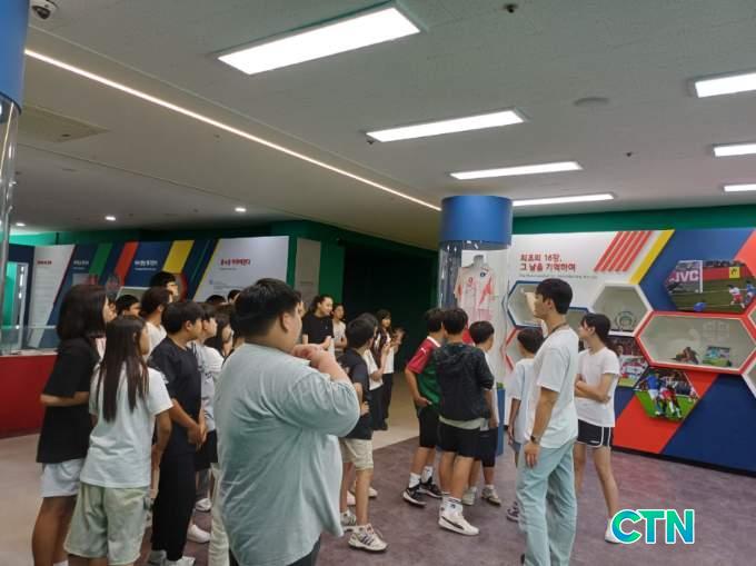 °æ±âÀå Åõ¾î¿¡ ÃÊûµÈ ÇлýµéÀº 2002³â ¿ùµåÄÅ ±â³ä°ü, ¼±¼öµéÀÇ ¶ôÄ¿·ë ¹× ÀÎÅͺä·ëÀ» µÑ·¯º¸°í °üÁß¼®°ú ½ÇÀü°æ±â°¡ ÆîÃÄÁö´Â ±×¶ó¿îµå¸¦ ¹â¾Æº¸¾Ò´Ù. Åõ¾î¿¡ Âü¿©ÇÑ ÇлýÀº ¡°±×¶ó¿îµå¿¡ µé¾î¼´Ï Ã౸¼±¼ö°¡ µÈ °Í °°Àº ±âºÐÀÌ µç´Ù.¡±¶ó¸ç ¡°Ã౸¿Í °ü·ÃµÈ ´Ù¾çÇÑ Á÷¾÷ÀÌ ÀÖ´Ù´Â »ç½Çµµ ¾Ë°Ô µÇ¾î À¯ÀÍÇß´Ù.¡±¶ó°í ¼Ò°¨À» ¹àÇû´Ù.