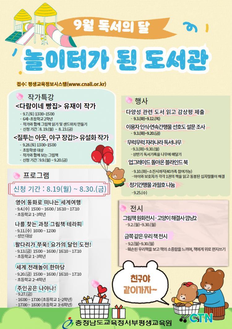 [¼»ê/CTN]°¡±ÝÇö ±âÀÚ = ÃæÃ»³²µµ±³À°Ã»¼ºÎÆò»ý±³À°¿ø(¿øÀå À̱⿵)Àº ¡º³îÀÌÅͰ¡ µÈ µµ¼°ü¡»À» ÁÖÁ¦·Î 9¿ù µ¶¼ÀÇ ´Þ Çà»ç¸¦ ÁøÇàÇÑ´Ù°í ¹àÇû´Ù.