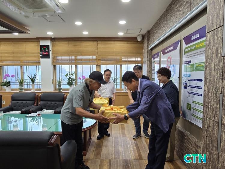 [¿¹»ê/CTN]ÃÖ¿ë°ü ±âÀÚ = ¿¹»ê±³À°Áö¿øÃ»(±³À°Àå ¹Úµ¿½Å)Àº 12ÀÏ Ãß¼® ¸íÀýÀ» ¸Â¾Æ ±³À°±â°üÀÇ Ã»°á°ú ¾ÈÀüÀ» À§ÇØ Èû½áÁֽô û¼Ò¿ø ¹× ´çÁ÷Àڵ鿡°Ô µû¶æÇÑ ¸¶À½°ú °¨»çÀÇ ¶æÀ» ´ã¾Æ Áö¿ª Ư»ê¹°ÀΠǥ°í¹ö¼¸À» ¼±¹°·Î Àü´ÞÇß´Ù.